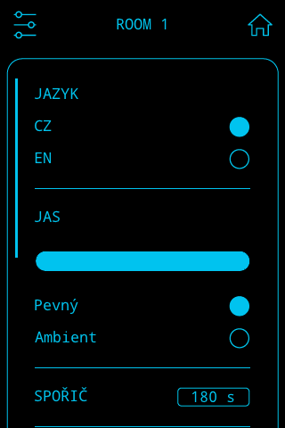 Konfigurační menu se vyvolá krátkým stiskem ikony v levém horním rohu.