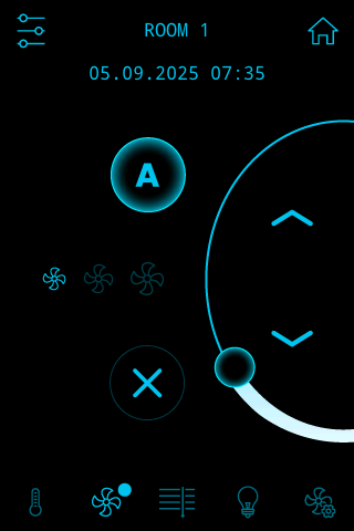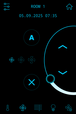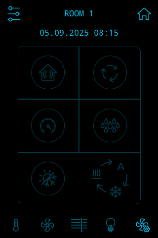 Na obrazovce lze zvolit mezi provozními režimy větrání: