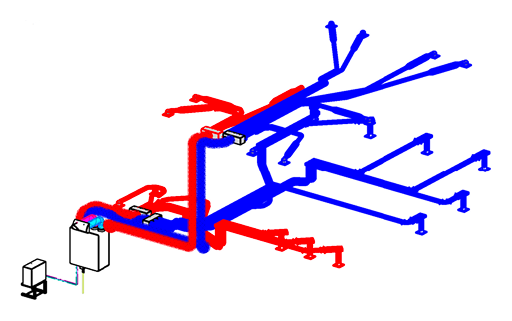 3D model rozvodů VZT – ukázka projektové dokumentace
